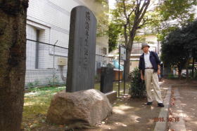 八丁畷駅の川崎警察署の近くに松尾芭蕉が「麦の別れ」の句を詠んだ場所に句碑が建っています。