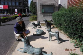 中野駅近くに江戸元禄期に生類憐みの令によって、お囲い犬屋敷ができました。その跡地に犬の像があります。勿論、動きません。
