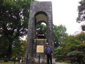 意外と知られていませんが、日比谷公園の内堀通りに近い三笠山にある『自由の鐘』が、毎日、正午にその鐘を鳴らします。