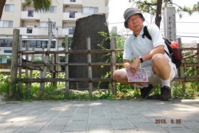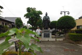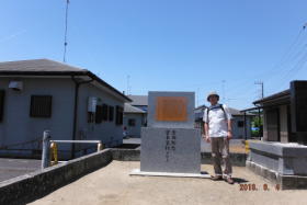 「月日は百代の過客にして、行きかう人もまた旅人なり」の碑の前で思わず写真撮影です。