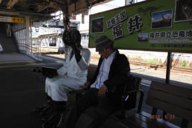 敦賀駅で9時26分発のしらさぎ1号を待っていたら、邪魔臭い奴がベンチを占領していました。あっちへ行けと文句を言いましたたが、返事がありません。