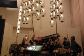 秋田市民俗芸能伝承館の内部には、実際に使用している竿灯が置いてあります。女性が竿灯を触ることができませんが、ここなら持つことができます。